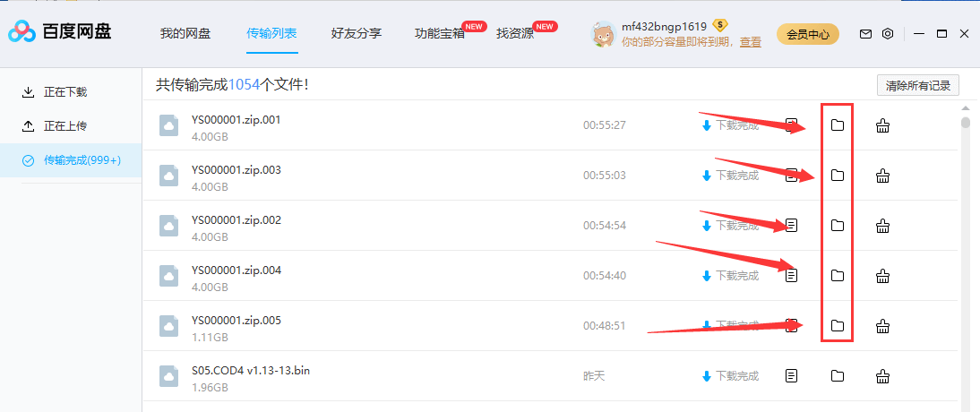 7.下载完成后点击 右侧小文件夹 进入你的文件夹操作(任意一个)